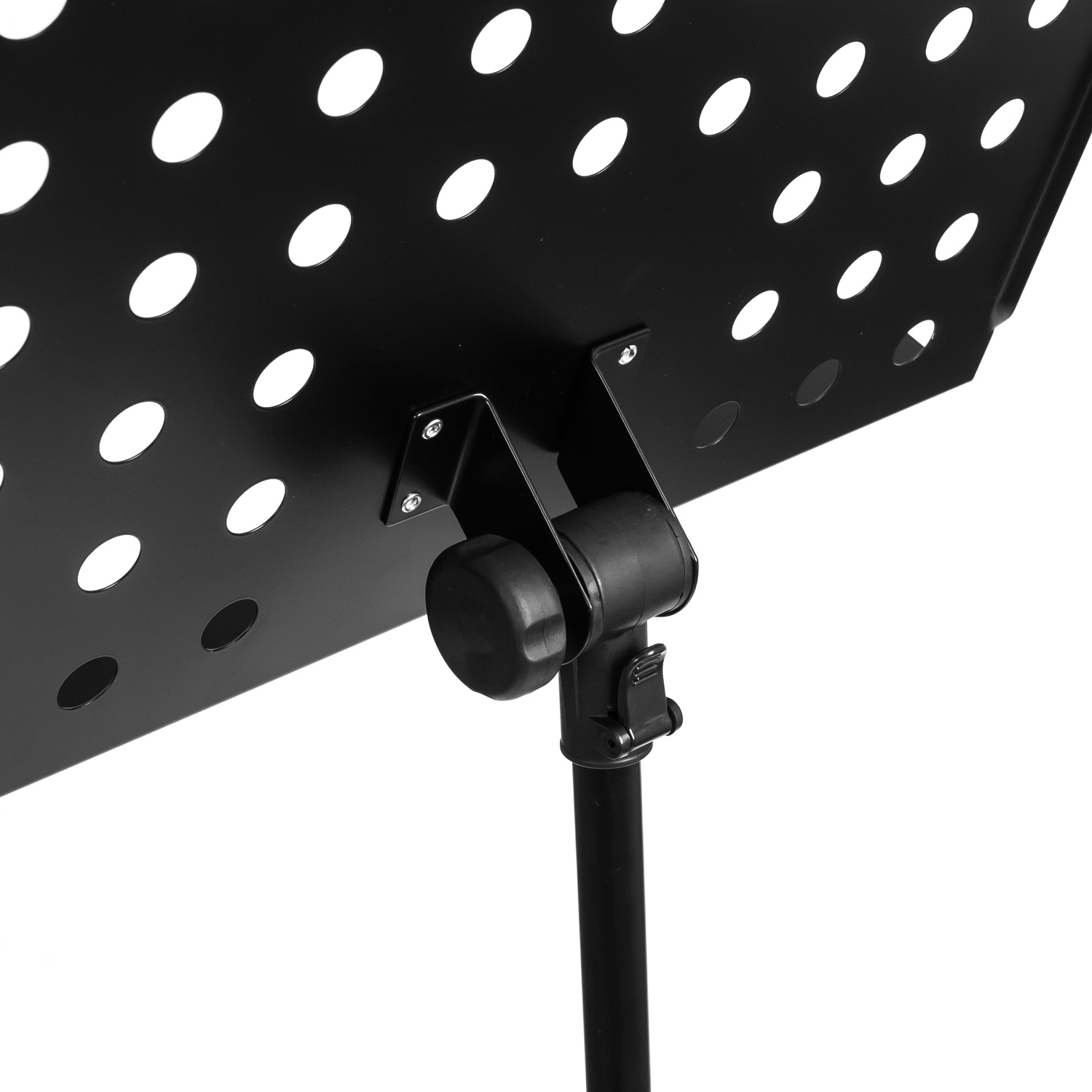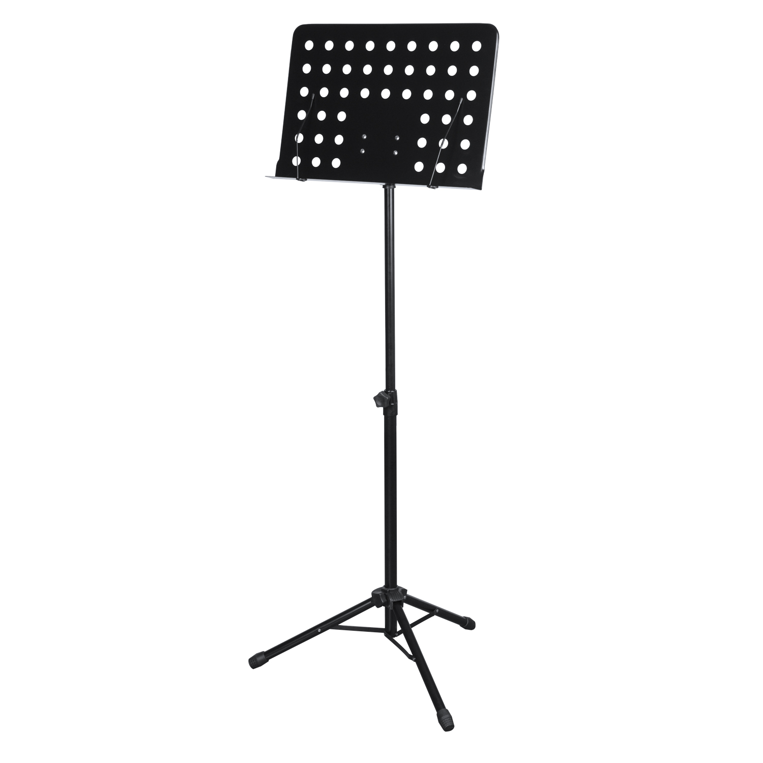 Für die meisten Musiker ist ein Notenständer unverzichtbar. Wenn man mehr Platz für Noten braucht und es insgesamt komfortabler mag, greift man zu einem Orchesterpult. Das Cascha Orchesterpult besteht aus Metall und ist schwarz lackiert. Die Fußstützen besitzen zusätzliche Stützstreben zur Stabilisierung. Die Höhe des Pults lässt sich von 64 cm bis 115 cm verstellen. Es ist mit griffigen Schrauben ausgestattet und ausziehbar. So lässt es sich perfekt auf die jeweilige Körperhöhe anpassen, egal ob man im Sitzen oder Stehen spielt. Die Notenauflage besteht aus einer gelochten Platte mit den Maßen 50 x 34 cm. Sie ist im Neigungswinkel einstellbar, abnehmnar und bietet mehr Platz für Notenblätter und Bücher als normale Notenständer. Die eingebauten Notenklemmen sorgen für einen sicheren Halt und verhindern das Herunterfallen der Noten. Nach Bedarf können die Klemmfedern entfernt werden. Das Orchesterpult lässt sich kinderleicht ab- und schnell wieder aufbauen.