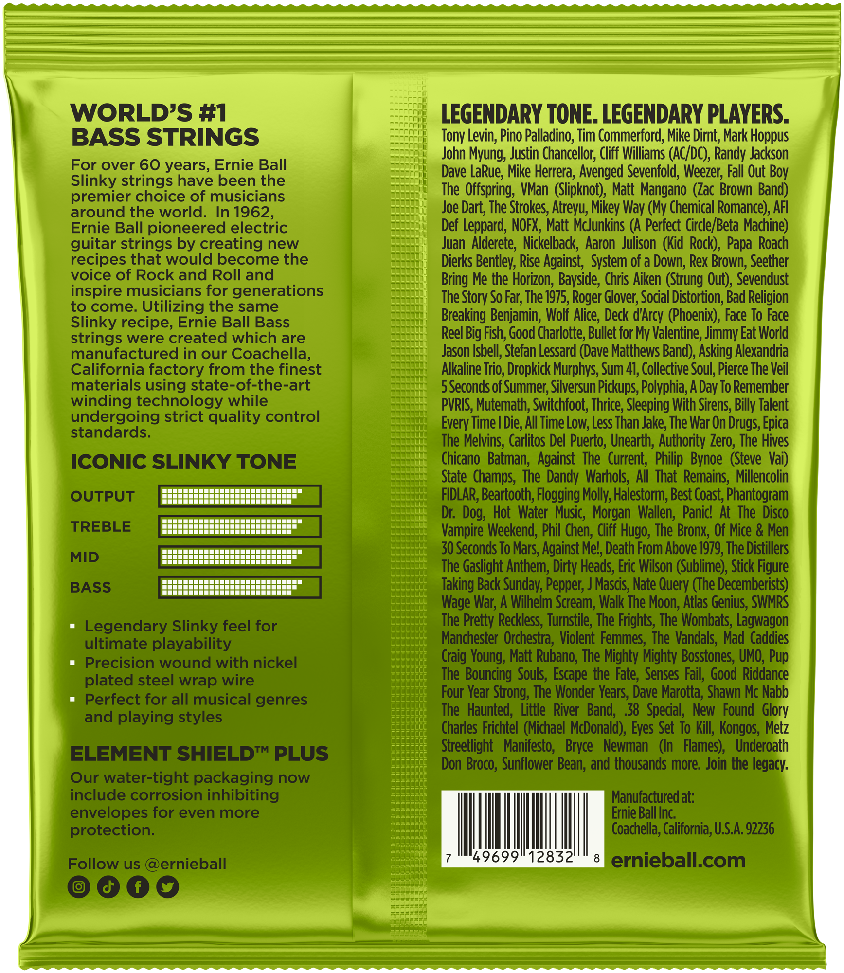 Die Ernie Ball Regular Slinky Bass Saiten liefern fundamentale Bässe und brillante Höhen und werden aus einem zinnüberzogenen Stahlkern gefertigt, der von einem Nickel-Stahl umwickelt wird. Diese Saiten sind der Standard unter den Bass-Saiten.