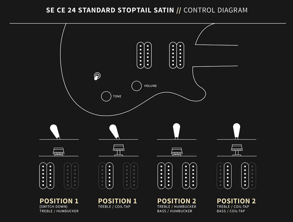 Loaded with 85/15 “S” pickups and a push/pull tone control for coil tapping, the SE CE 24 Standard Stoptail Satin packs impressive versatility, whether you’re chasing classic humbucking growl or snappy single-coil sparkle. The fixed-bridge design offers guaranteed tuning consistency and simple setup, making it a great choice for players who want plug-and-play reliability.