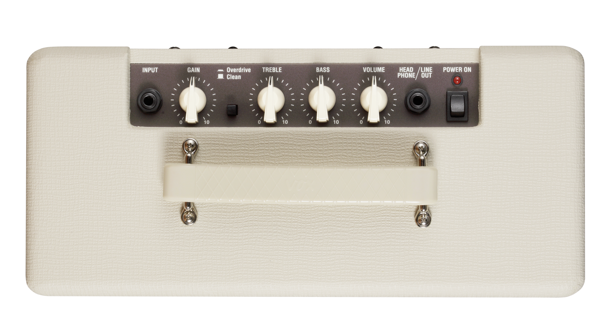 - Regler: Gain, Treble, Bass, Volume, Clean/Overdrive-Schalter, Power On/Off